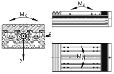 M0y8735 Nm滑块引导系统的许用扭矩这些数值是单一载荷,当执行器的下部完全被支撑时使用。当承受联;合载荷时,这些值必须减小。直线引导系统的设计标准,见 INA PF1 样本。