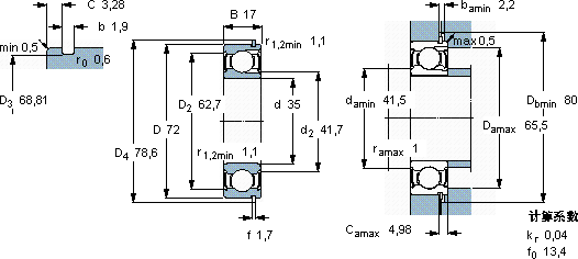 | 动态 | 静态 | 参照速度 | 限制速度 | 轴承,带止动环 | 止动环 | ||||||