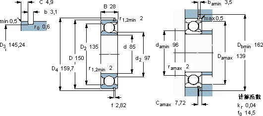 | 动态 | 静态 | 参照速度 | 限制速度 | 轴承,带止动环 | 止动环 | ||||||