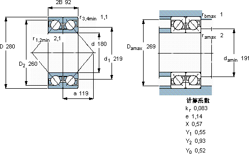SKF 2 x 7036 BGM轴承尺寸图纸
