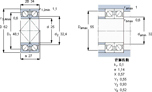 2 x 7305 BEGBY轴承-SKF 2 x 7305 BEGBY轴承尺寸、图纸、价格