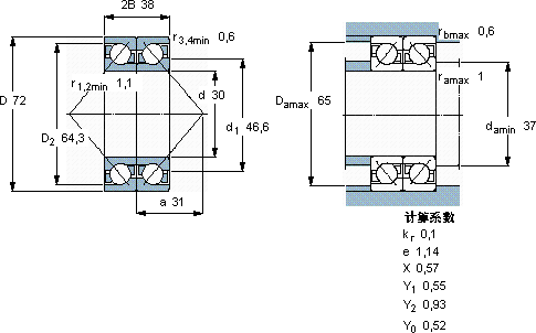 SKF 2 x 7306 BEGBP *轴承尺寸图纸