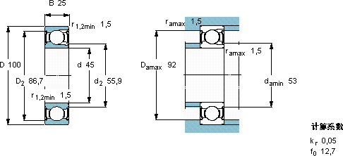 | 45 | 100 | 25 | 59,4 | 46,5 | 1,96 | 13000 | 6300 | 0,88 | 309-2Z | |
