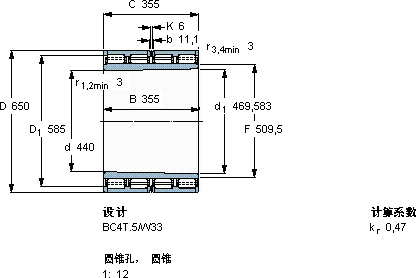 圆柱滚子轴承, 四列, BC4T.5, 圆锥型内孔