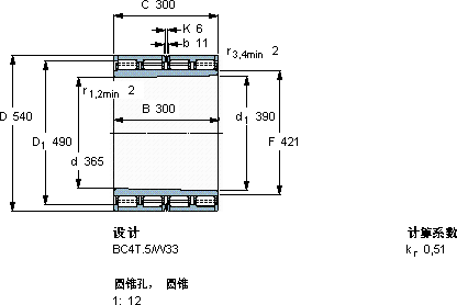 | 圆柱滚子轴承, 四列, BC4T.5, 圆锥型内孔 | |||||||||