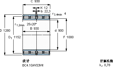 | 圆柱滚子轴承, 四列, BC4.10 | |||||||||