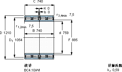 | 圆柱滚子轴承, 四列, BC4.10 | |||||||||