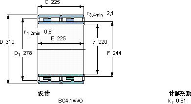 | 圆柱滚子轴承, 四列, BC4.1 | |||||||||