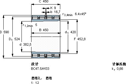 | 圆柱滚子轴承, 四列, BC4T.5, 圆锥型内孔 | |||||||||