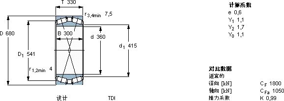 | 圆锥滚子轴承, 双列,TDI结构, TDI TDI.1/Y2 | |||||||||