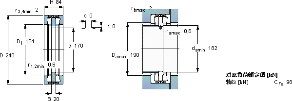 | 主要数据尺寸 | 基本负荷额定值 | 疲劳负荷限值 | 最小负荷系数 | 型号 | ||||