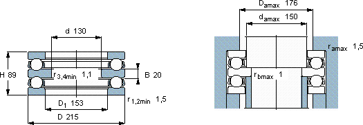 | 推力球轴承, 双向 | |||||||||||