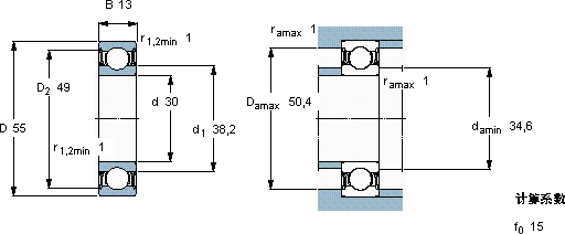 | 30 | 55 | 13 | 13,8 | 8,3 | 0,355 | 34000 | 24000 | 0,11 | 6006-2RZTN9/HC5C3WT | |
