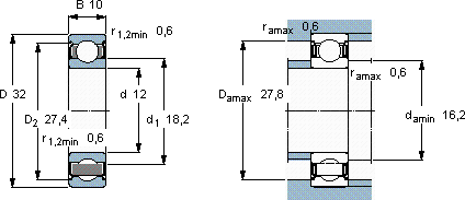 | 12 | 32 | 10 | 3,1 | 100 | 180 | 0,037 | 6201-2Z/VA228 | |