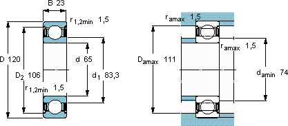 | 65 | 120 | 23 | 40,5 | 220 | 360 | 0,94 | 6213-2Z/VA208 | |