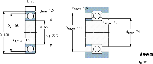 | 65 | 120 | 23 | 58,5 | 40,5 | 1,73 | 16000 | 8500 | 0,92 | 6213/HC5C3 | |