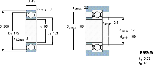 | 95 | 200 | 45 | 159 | 118 | 4,15 | - | 2200 | 5,65 | 6319-RS1 * | ||