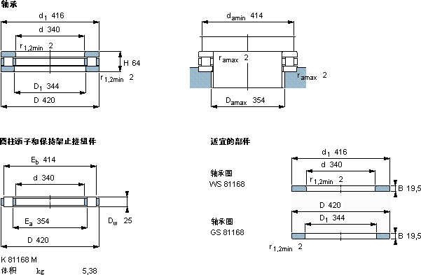 81168 M轴承-SKF 81168 M轴承尺寸、图纸、价格
