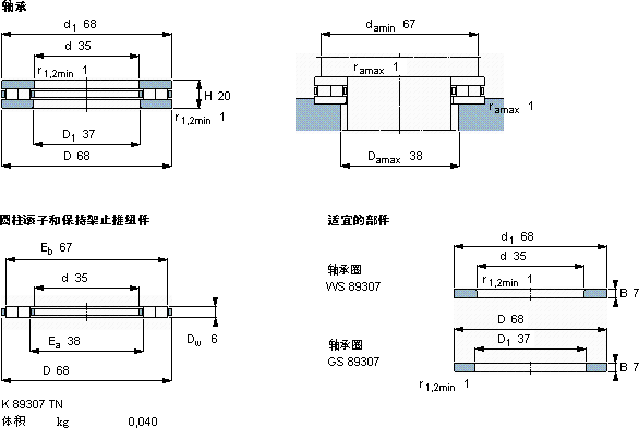 89307 TN轴承-SKF 89307 TN轴承尺寸、图纸、价格