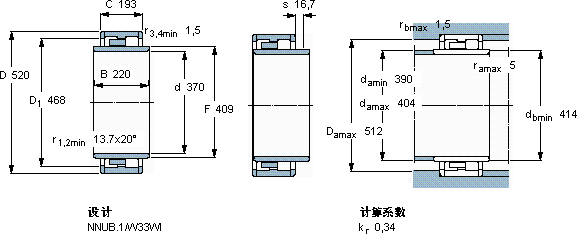 | 圆柱滚子轴承, 双列, NNUB.1 | |||||||||||