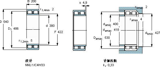 | 圆柱滚子轴承, 双列, NNU.1 | |||||||||||