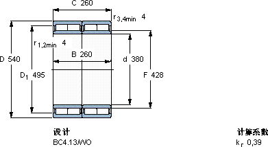 | 圆柱滚子轴承, 四列, BC4.13 | |||||||||