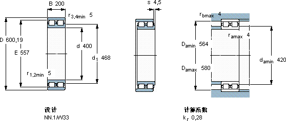 | 圆柱滚子轴承, 双列, NN.1 | |||||||||||
