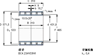 | 圆柱滚子轴承, 四列, BC4T.23, 单面密封件 | |||||||||
