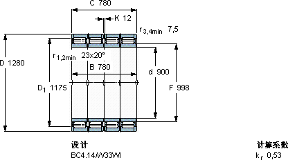 | 圆柱滚子轴承, 四列, BC4.14 | |||||||||
