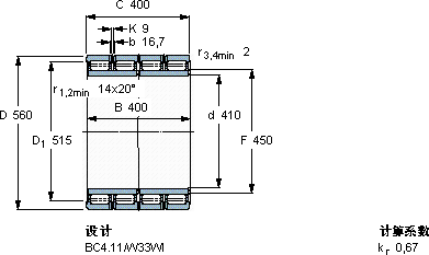 | 圆柱滚子轴承, 四列, BC4.11 | |||||||||
