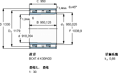 | 圆柱滚子轴承, 四列, BC4T.4, 圆锥型内孔 | |||||||||