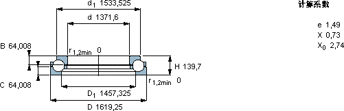 | 主要数据尺寸 | 基本负荷额定值 | 疲劳负荷限值 | 最小负荷系数 | 体积 | 型号 | ||||