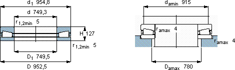 | 圆锥滚子推力轴承, 单向 | ||||||||||