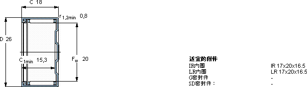 BK 2018 RS轴承-SKF BK 2018 RS轴承尺寸、图纸、价格