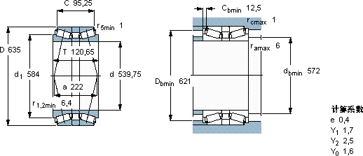 | 圆锥滚子轴承, 单列,背对背配对 | ||||||||||