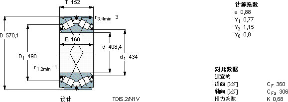 | 圆锥滚子轴承, 双列,TDI结构, TDIS.2/N1V, 两面密封件 | |||||||||