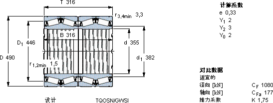 | 圆锥滚子轴承, 四列,TQO结构, TQOSN/GWSI, 轴承孔中的螺旋槽 | |||||||||