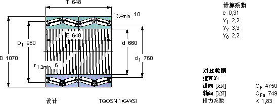 | 圆锥滚子轴承, 四列,TQO结构, TQOSN.1/GWSI, 轴承孔中的螺旋槽 | |||||||||