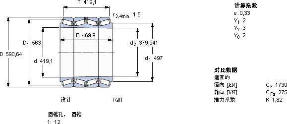 圆锥滚子轴承, 四列,TQI结构, TQIT, 圆锥型内孔