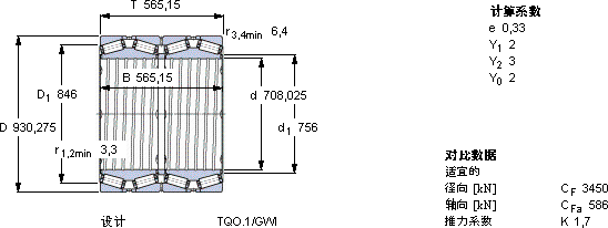 | 圆锥滚子轴承, 四列,TQO结构, TQO.1/GWI, 轴承孔中的螺旋槽 | |||||||||