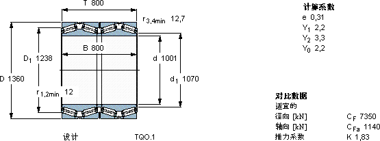 | 圆锥滚子轴承, 四列,TQO结构, TQ0.1 TQ0.1/WI | |||||||||