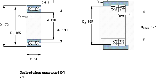 | 双向, 精密,高精度轴承, BTM .. B design, 40°, preload A | |||||||||||