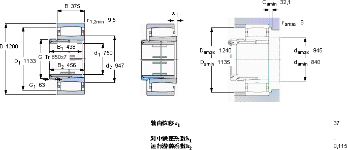 | CARB圆环滚子轴承, 带退卸套的, 与保持架 | |||||||||||