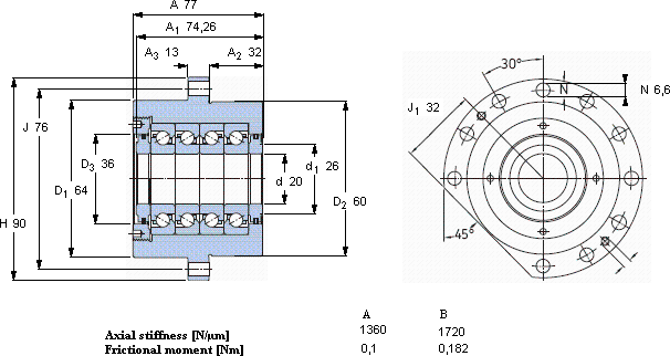 | 动态 | 静态 | 预压 | SKF | SNFA | |||||||