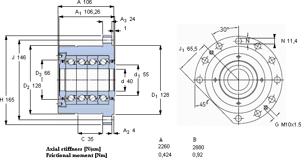 | 动态 | 静态 | 预压 | SKF | SNFA | |||||||