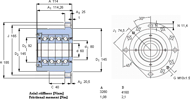 | 动态 | 静态 | 预压 | SKF | SNFA | |||||||