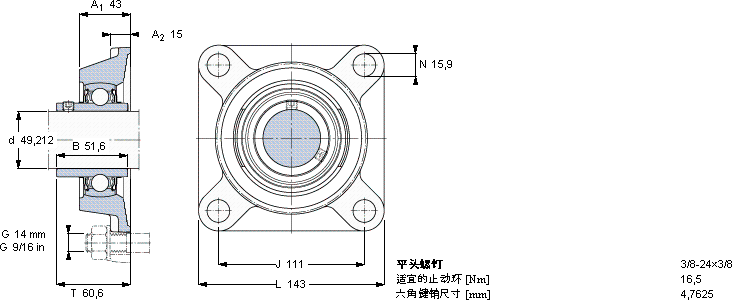 | 用于高温的Y-轴承单元,带法兰单元,方轴承座, 英制轴承 | ||||||||||