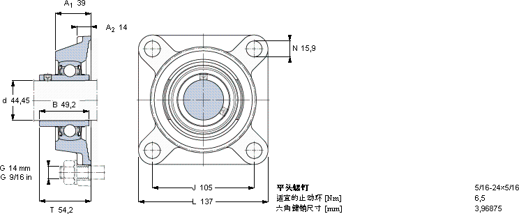 | 用于高温的Y-轴承单元,带法兰单元,方轴承座, 英制轴承 | ||||||||||