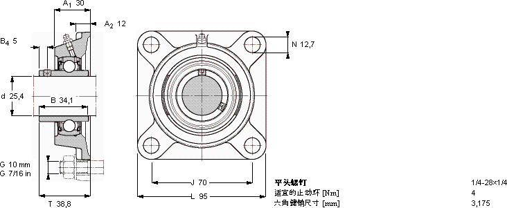 | Y-型轴承带法兰单元, 方形铸造轴承座,平头螺钉锁定, 英制轴承 | ||||||||||||