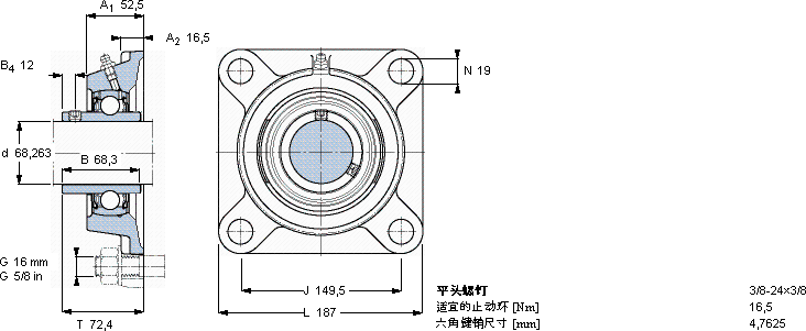 | Y-型轴承带法兰单元, 方形铸造轴承座,平头螺钉锁定, 英制轴承 | ||||||||||||
